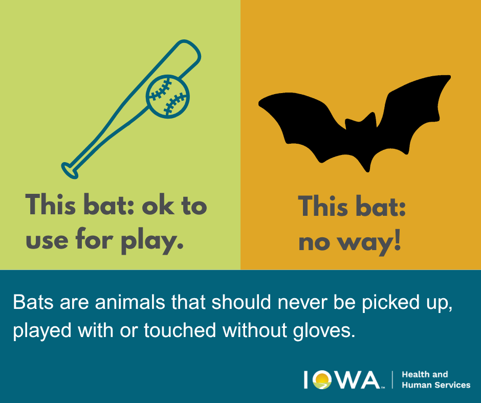 Beginning July 2025, Iowa HHS is coordinating an awareness campaign about bats in Iowa with other state agencies. Historically, national awareness campaigns and outreach have focused on bats in nature or reducing rabies risk from bats but rarely covered both topics. The goal of the Iowa campaign is to raise awareness of the importance of bats to our ecosystem and the risk of rabies associated with some bats. With the continued risk of white-nose syndrome to bat populations in Iowa and recent human rabies deaths related to bat exposures in neighboring states (Minnesota, Nebraska, Illinois), it is important to educate the public about each topic.